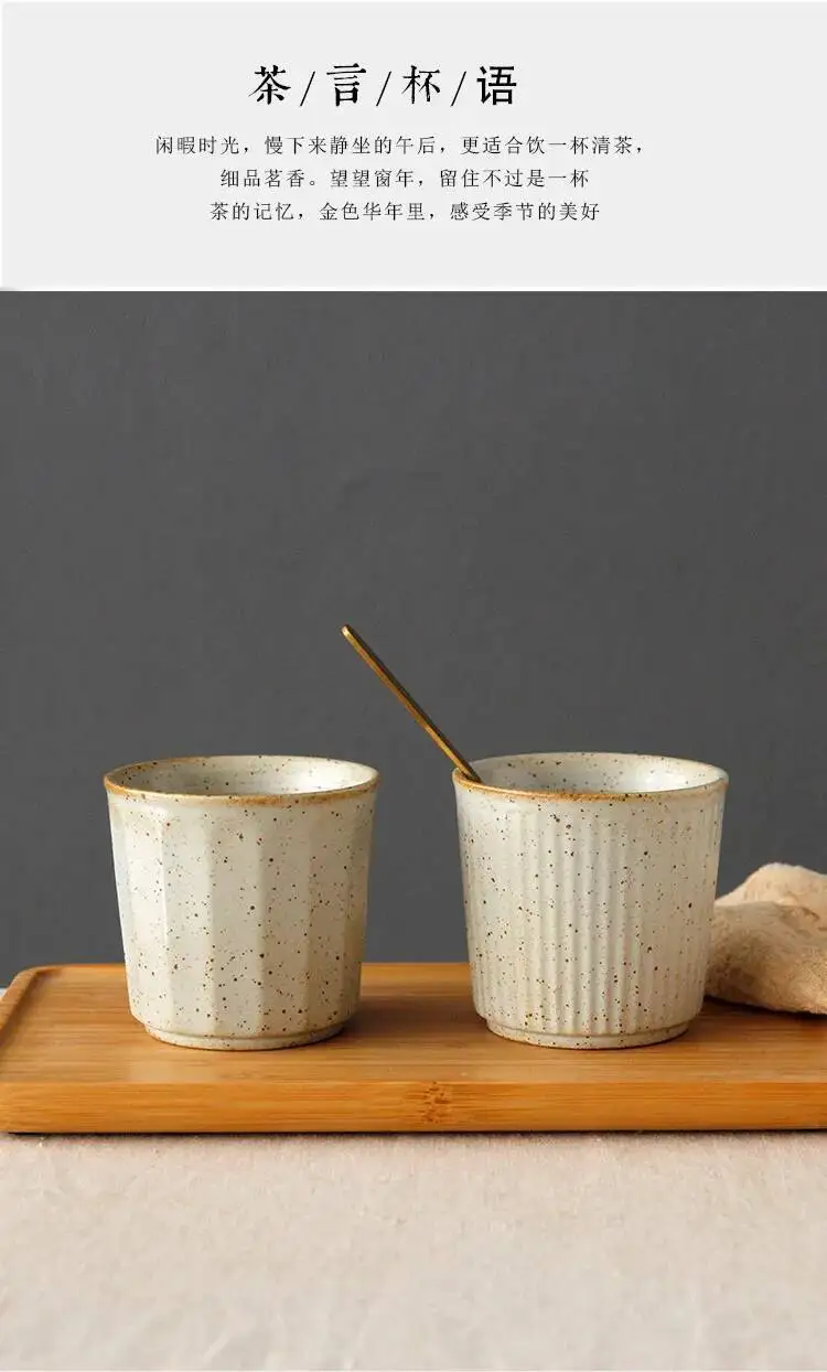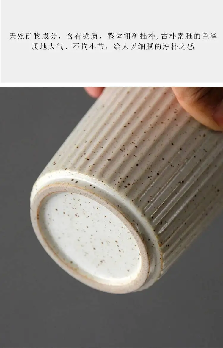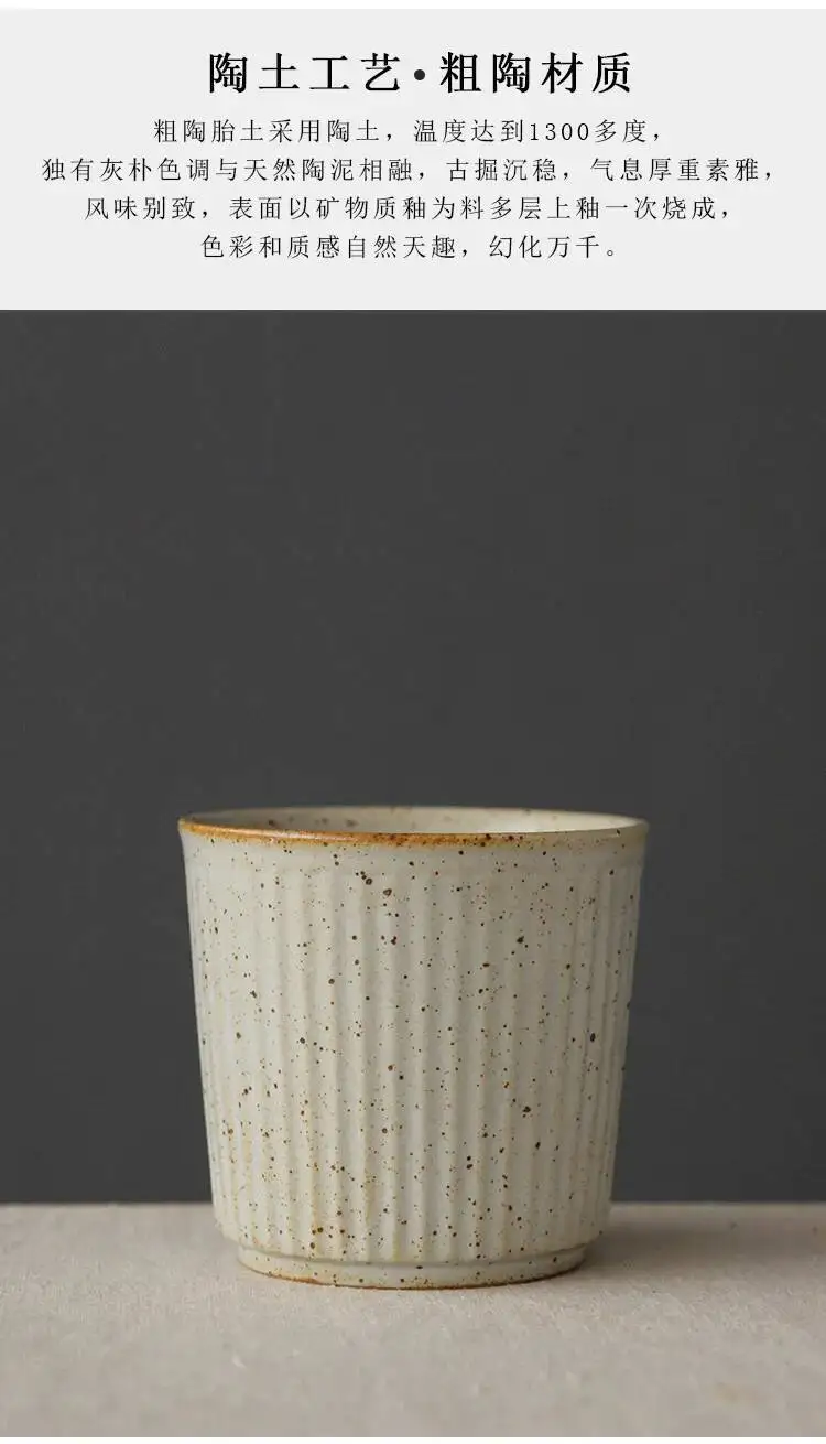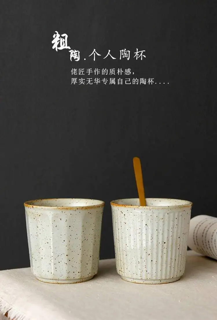 230ml Coarse Pottery Tea Cup Vertical Stripes Teaware Handmade Retro Water Japanese Handheld Office Ceramic Coffee Milk Cups