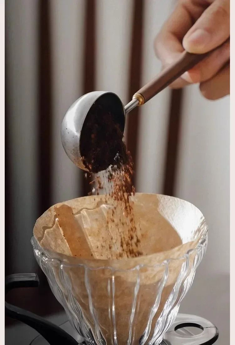 25ml Wooden Handle Stainless Steel Coffee Scoop Tablespoon Measuring Spoon Walnut Wood Long Handle Coffee Spoons Cafe Decoration